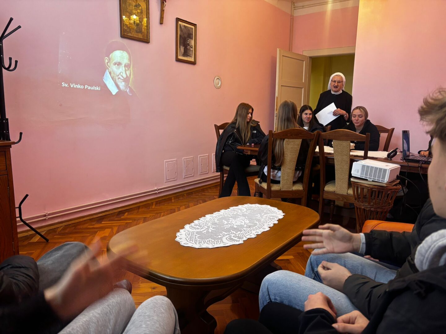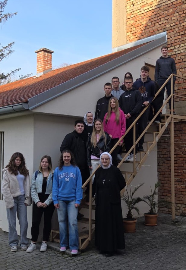 U ponedjeljak 16. ožujka 2026. učenici drugih razreda u sklopu nastave vjeronauka s profesoricom s. Hijacintom posjetili su samostan časnih sestara koje djeluju u Sisku. Sestre milosrdnice sv. Vinka Paulskoga stigle su u Sisak 1926. godine iz Zagreba te su iste godine otvorile školu, dječje zabavište i školu glasovira. U samostanu su učenici razgledali kapelicu sv. Josipa s predivnim detaljima, poput oltara na kojemu je prikazana Posljednja večera. Ispred Presvetoga Oltarskog Sakramenta kratko su se pomolili. Također su razgledali sjenicu i vrt u kojima časne sestre borave i uživaju tijekom lijepog vremena. Sestra Paula Puzjak upoznala je učenike sa djelovanjem časnih sestara u Sisku tijekom 100 godina. Kroz povijest je u samostanu ukupno bilo 111 sestra, a danas djeluju četiri sestre: s. Paula, s. Mihaela, s. Matea i s. Hijacinta.