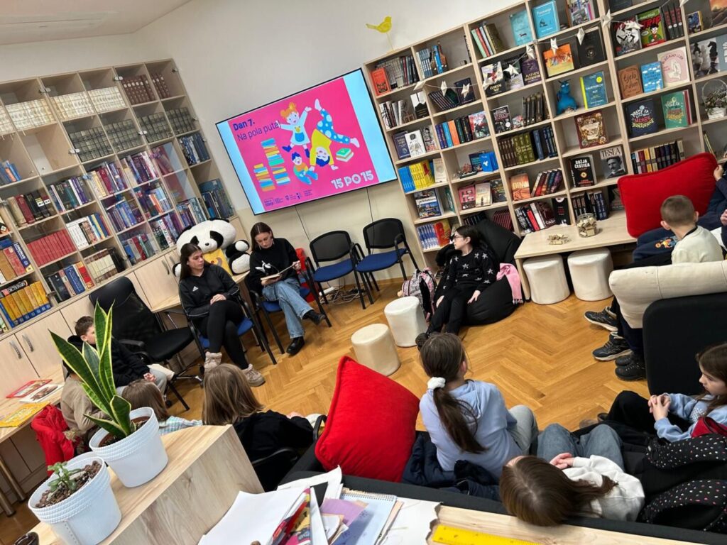 U srijedu, 21. siječnja 2026. na pola izazova 15 po 15, u knjižnicu Gimnazije Sisak došli su veseli trećaši iz OŠ Ivana Kukuljevića sa svojom učiteljicom Ksenijom Božičević. Gimnazijalke Tara Joka i Ana Marie Barukčić čitale su im „Začarane putove“ Višnje Stahuljak. Usprkos uzbuđenju, naši mali prijatelji slušali su vrlo pažljivo i brzo se upoznali s mačkom Tristanom, dječakom Dadom i upornim Pimlipim zvoncem. Malo su ih mučile teške riječi poput ,,tračak“ i ,,žamoriti“, ali su ih brzo savladali uz malu pomoć knjižničarke i profesorice.